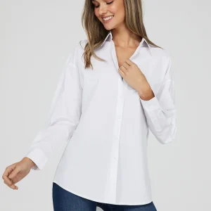 Off-The-Shoulder Puff Sleeve Eyelet Popover Top