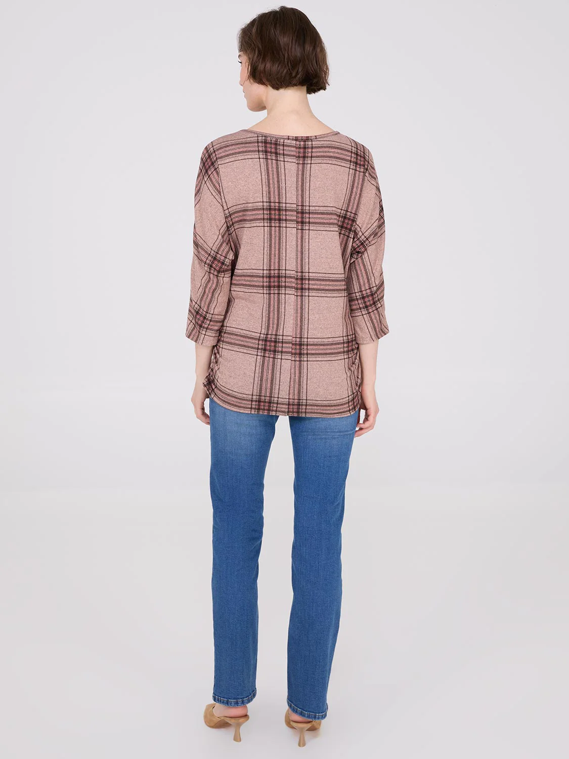 Nothing says flattering like side ruching, and this plaid print top is no exception offering a tailored fit that enhances your silhouette.