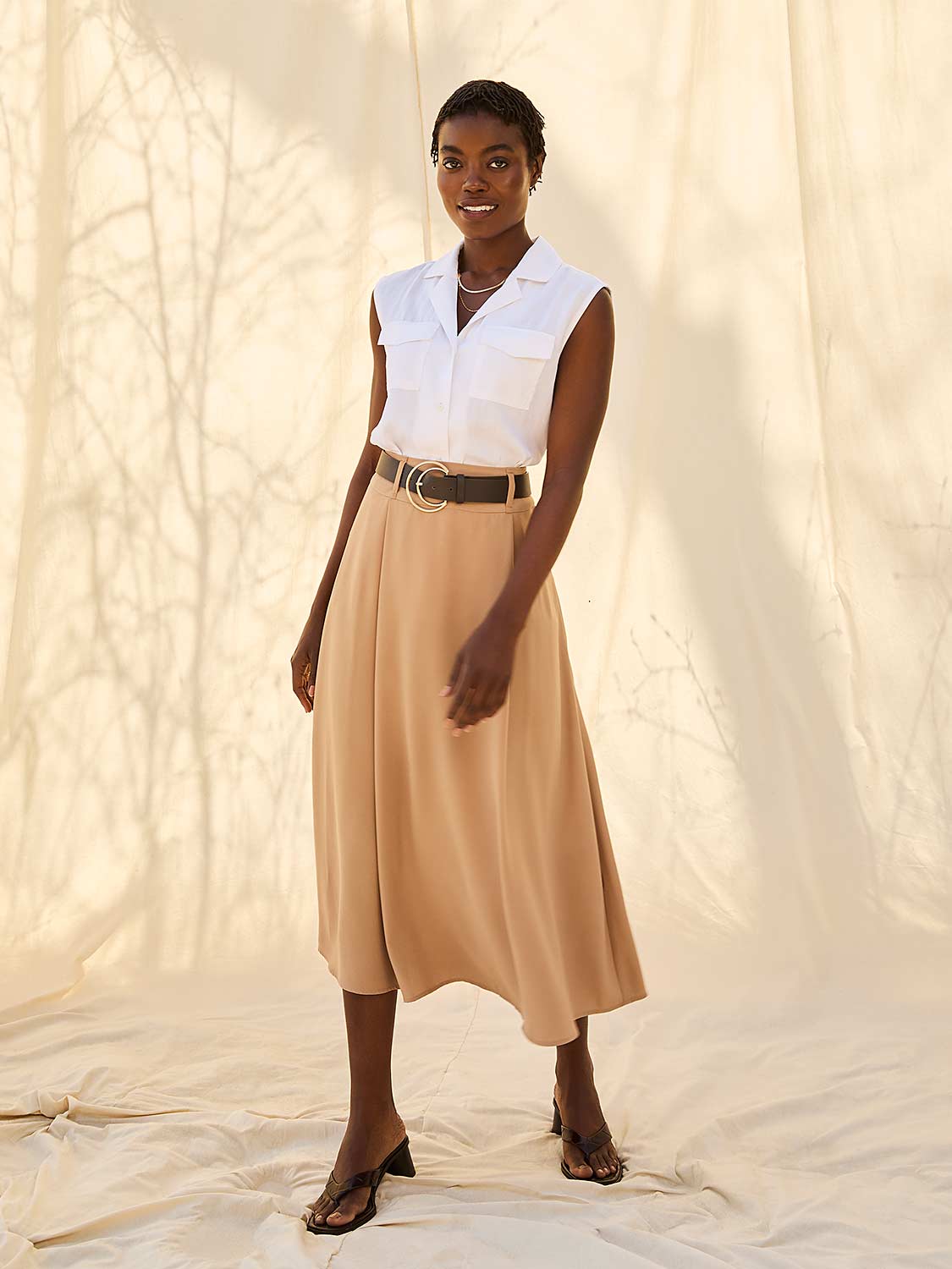 Go from day-to-play in this belted A-line satin skirt, an alluring option for when you want to look your best all day long.