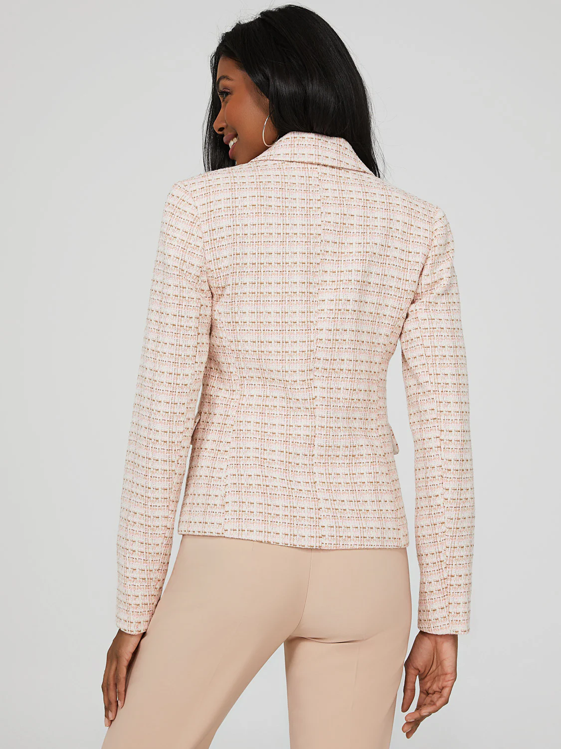 This soft blazer is the perfect addition to any outfit, including an in-office meeting or a coffee date! Mix with faux leather pants and knee-high booties for an elegant look.