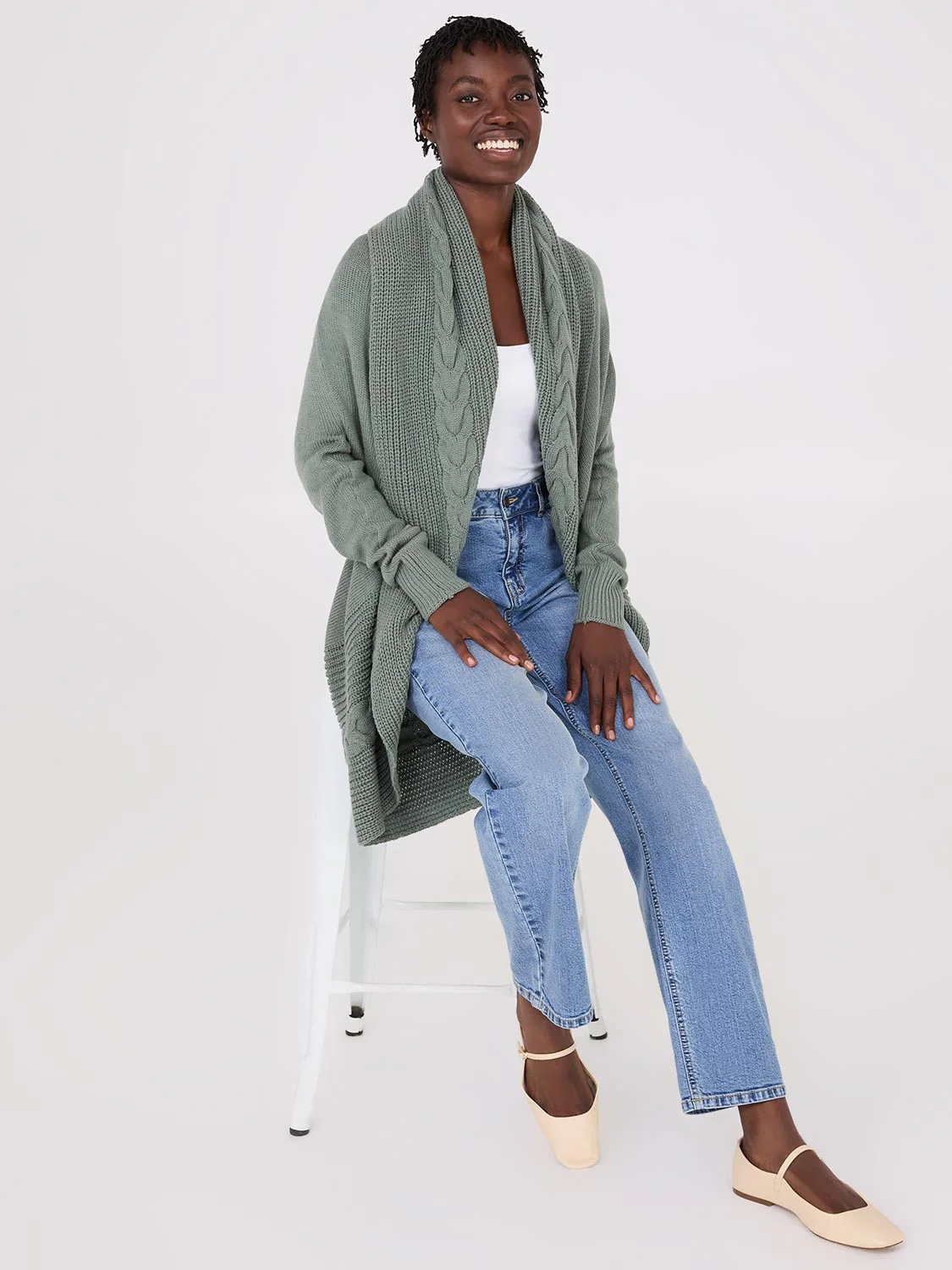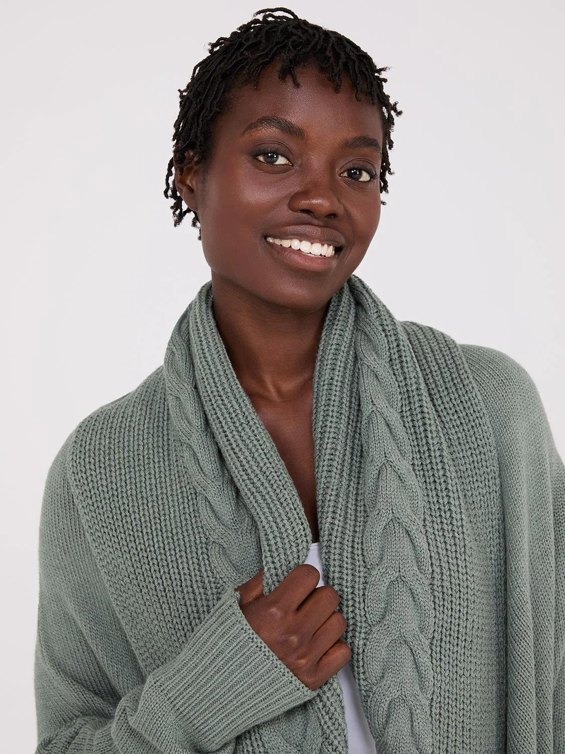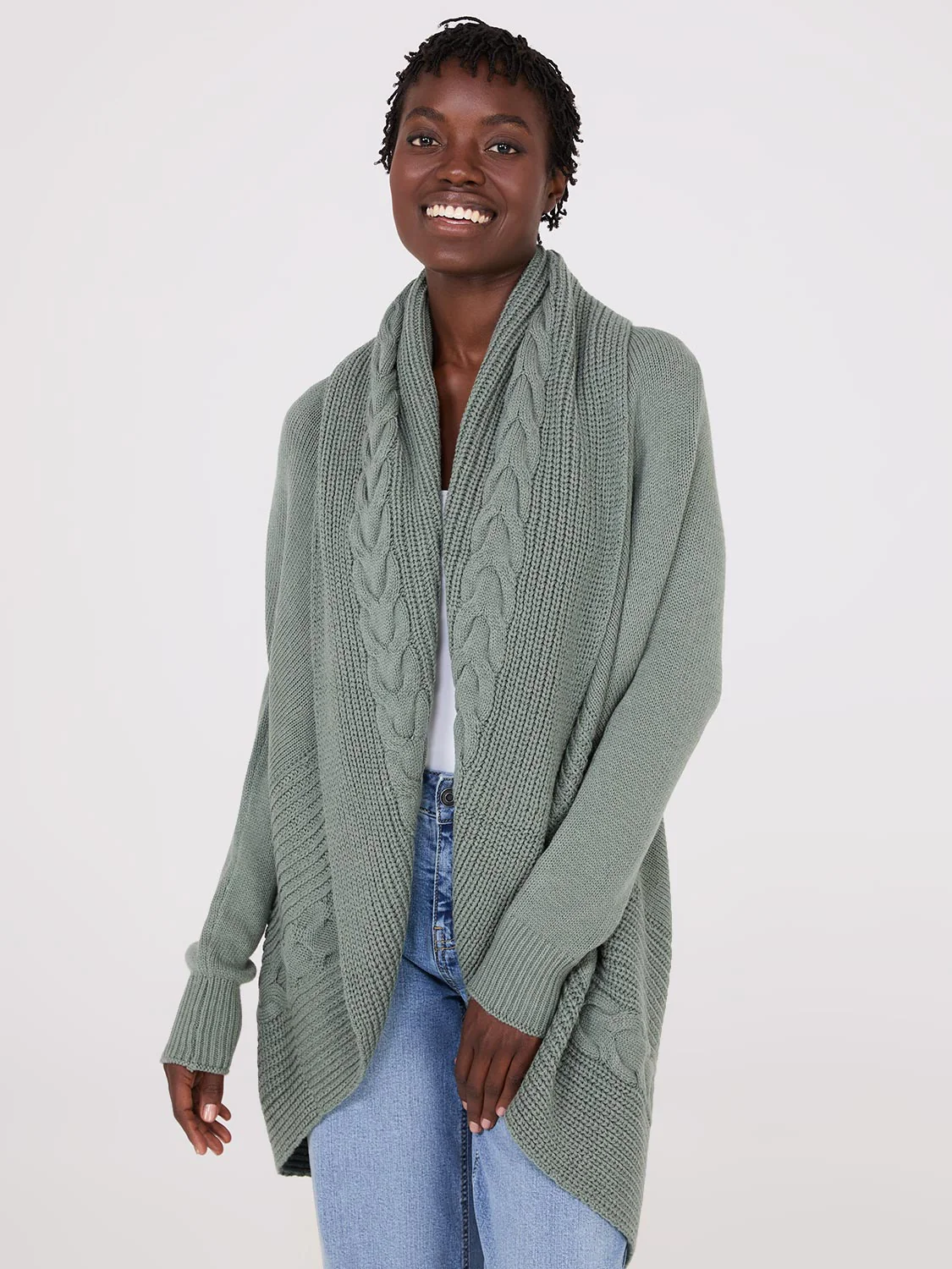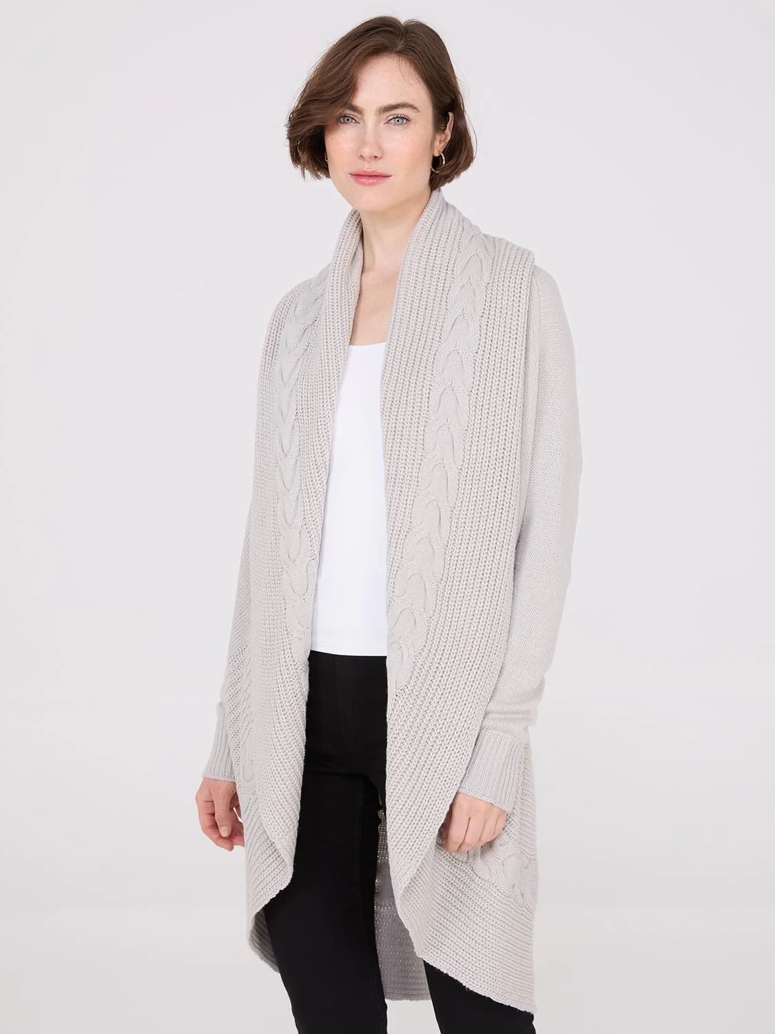 Cable Knit Shawl Cocoon Cardigan