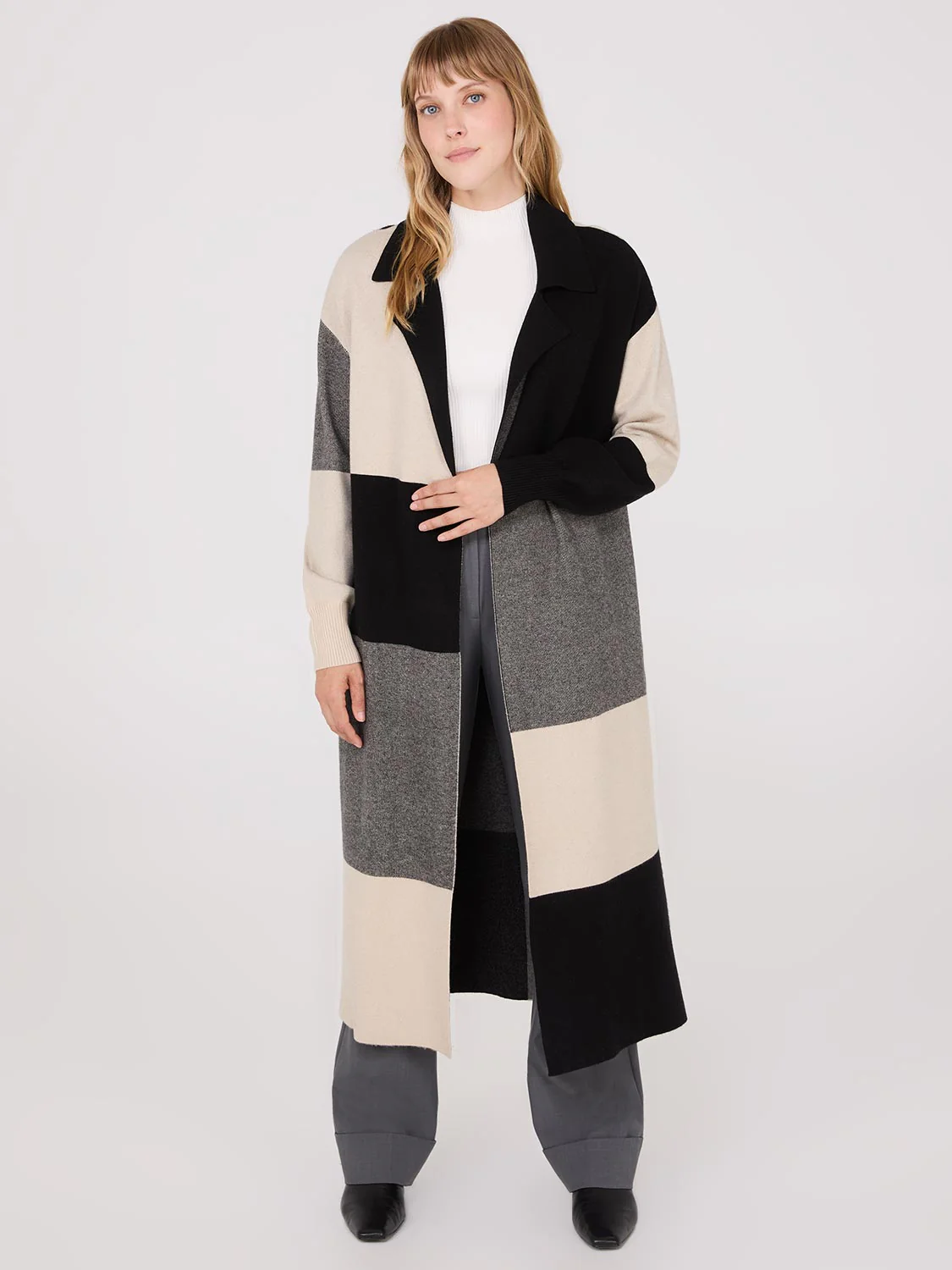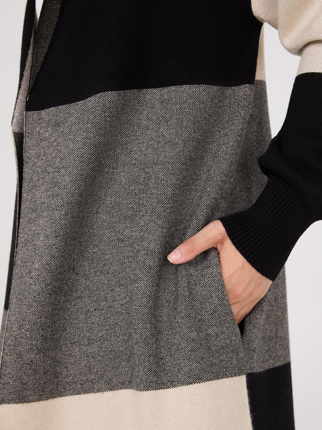 Equal parts stylish and comfortable, this colour block long duster is Monday to Sunday approved.