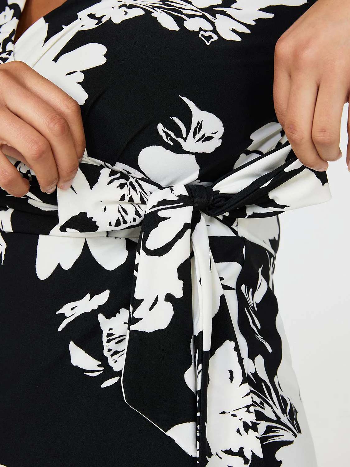 A flattering wrap-style silhouette enhances this floral print dress, with a collared neckline for added sophistication!