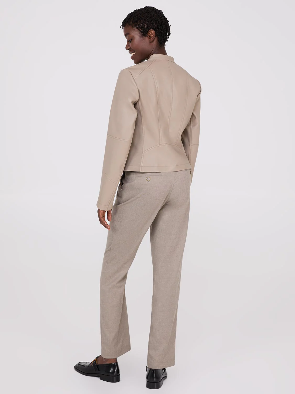 This biker-inspired faux leather jacket is a sleek and modern outerwear option that infuses edge into any look.