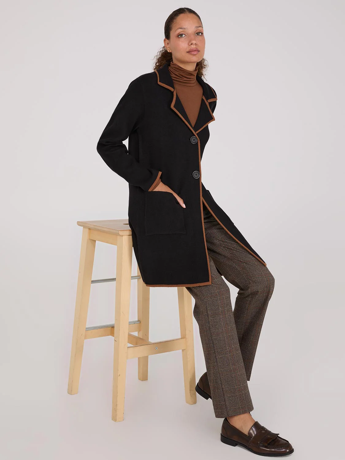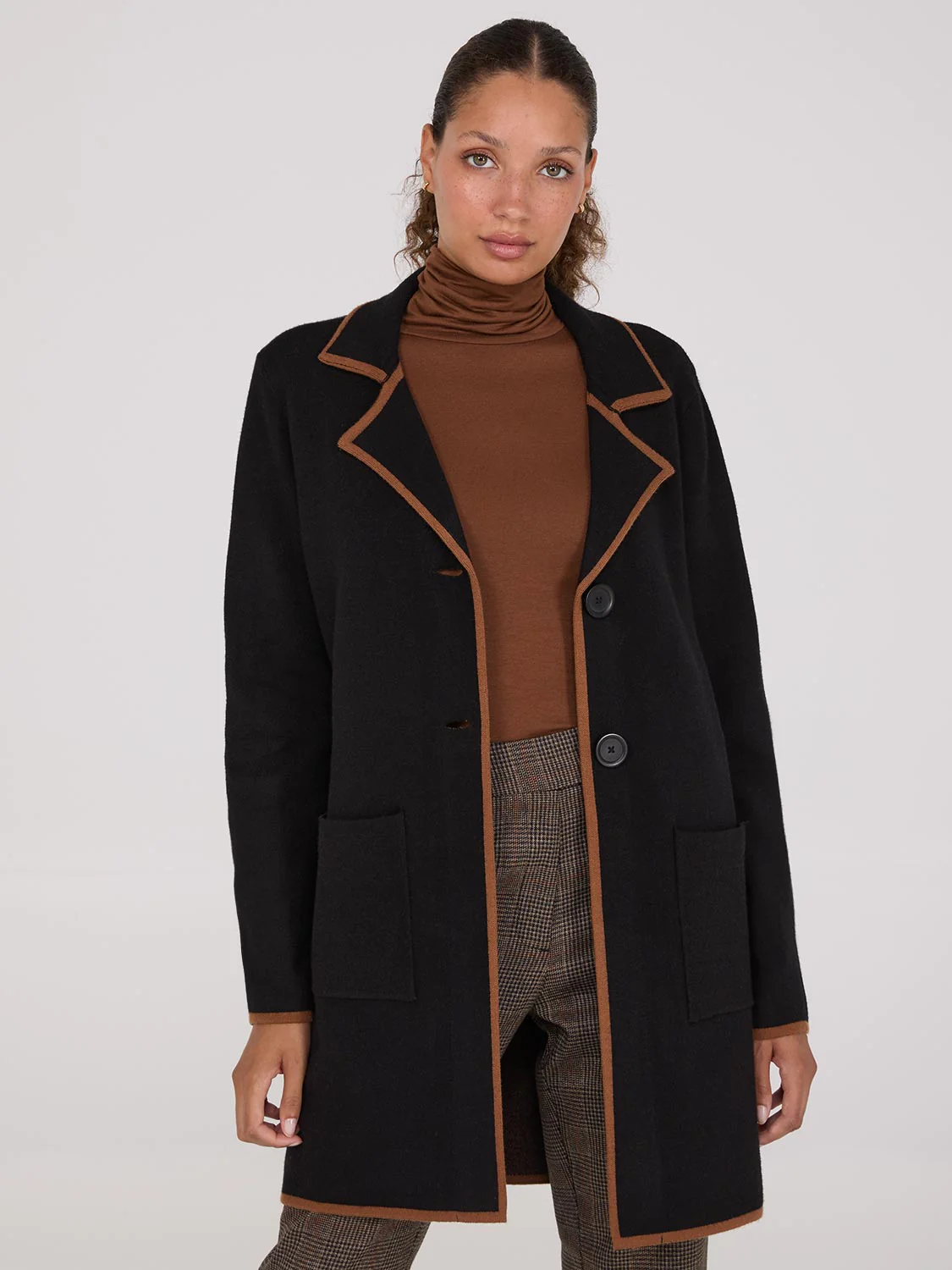 Finish off your outfit with this contrast trim coatigan. A mix between a cardigan and a coat, this outerwear piece is sure to keep you warm and stylish.