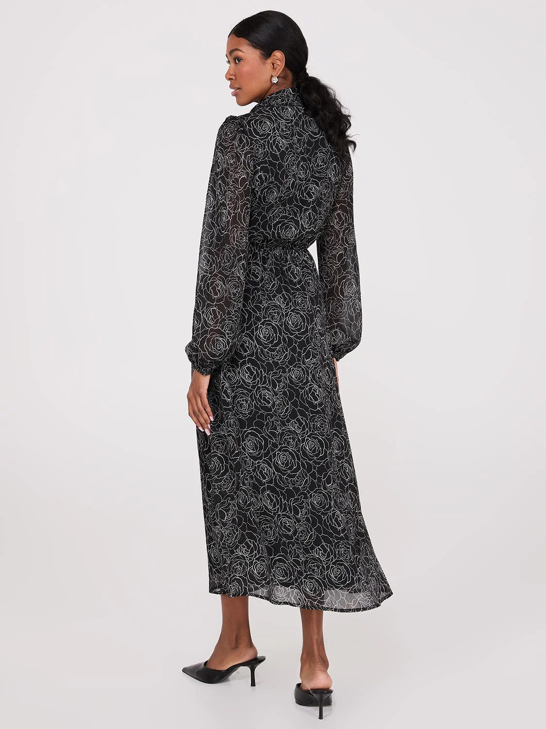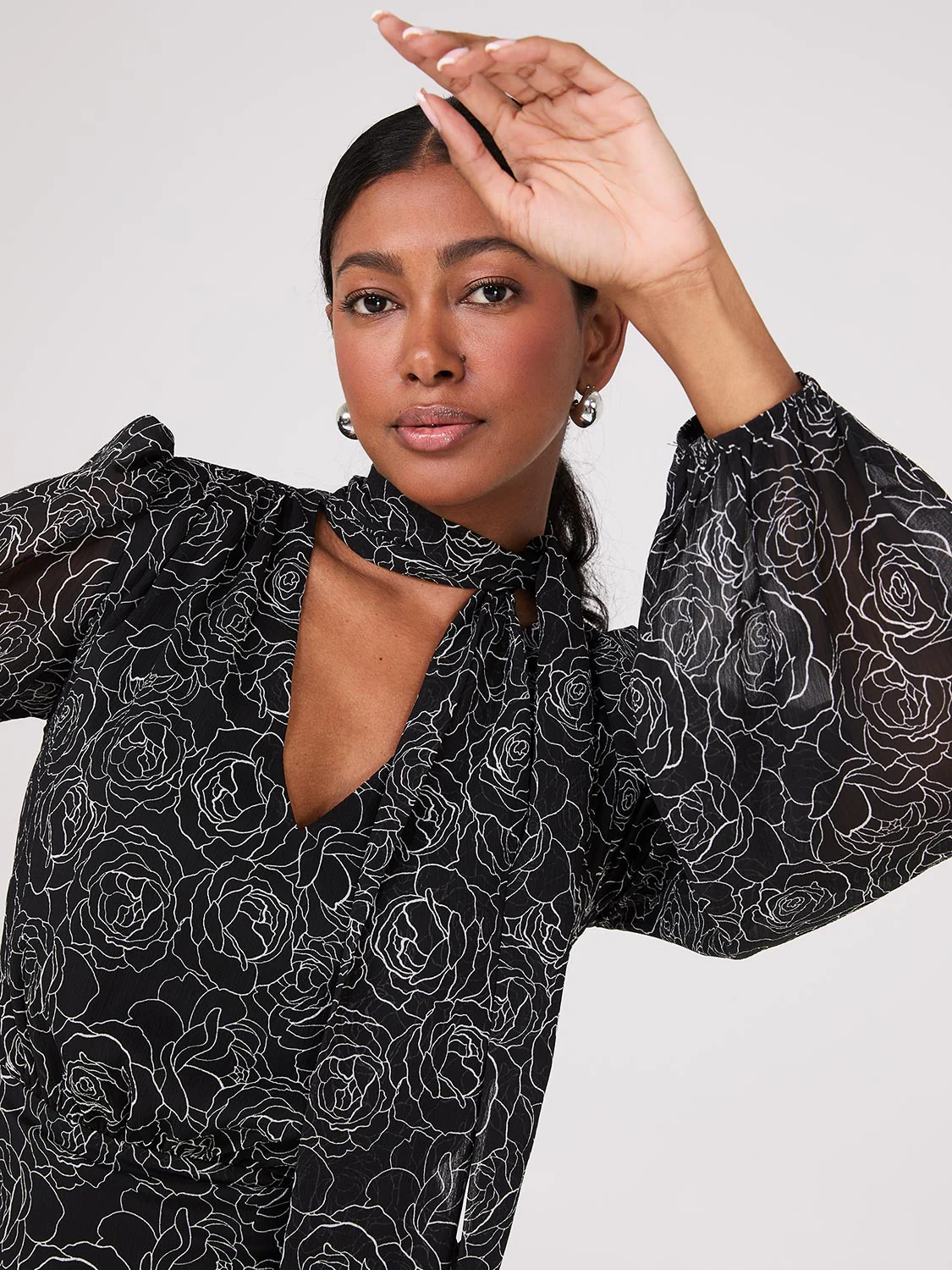 Feel your best in this confidence-boosting floral print dress that adorns a crinkled fabric and an elegant bow at the neckline.