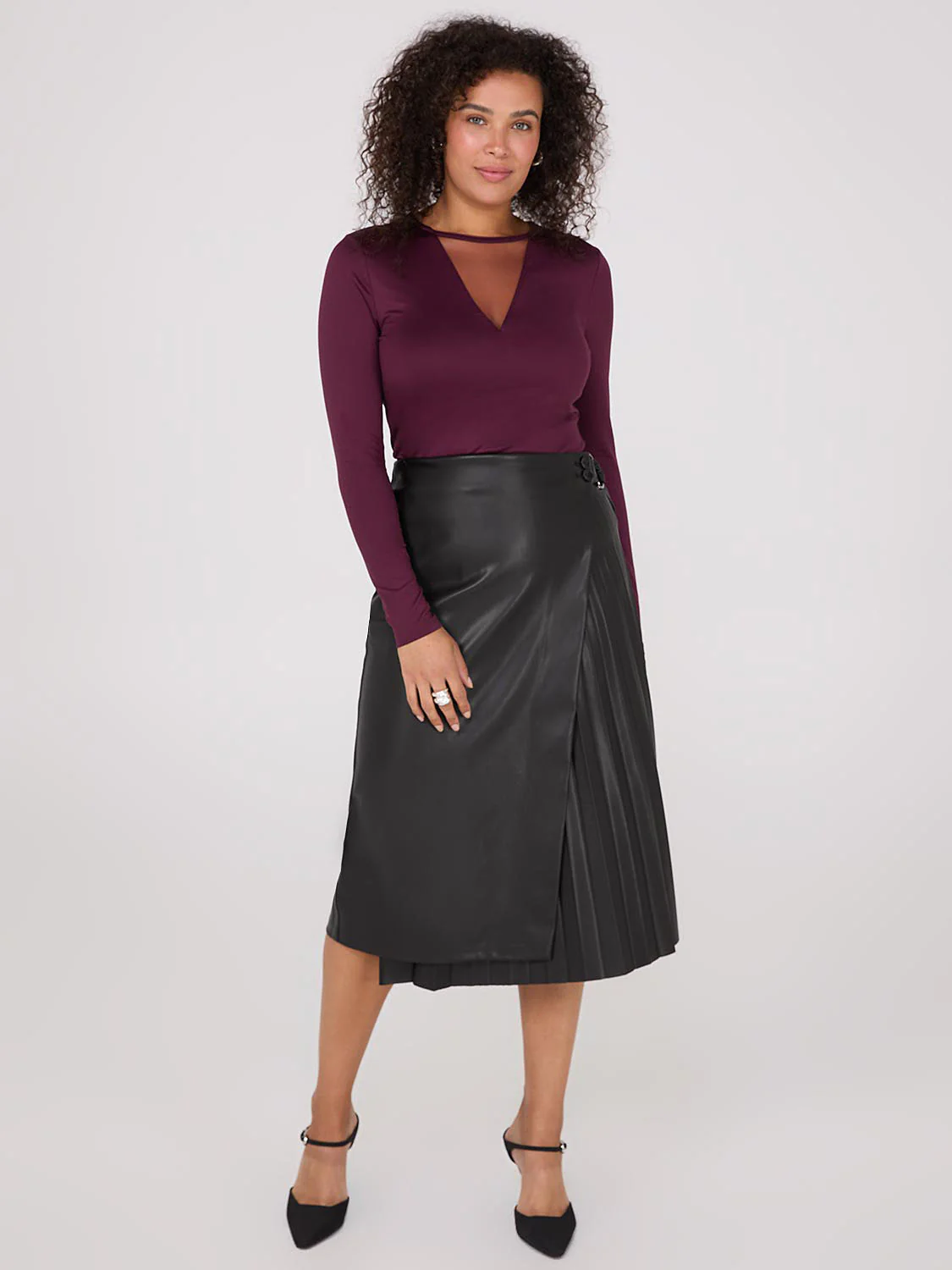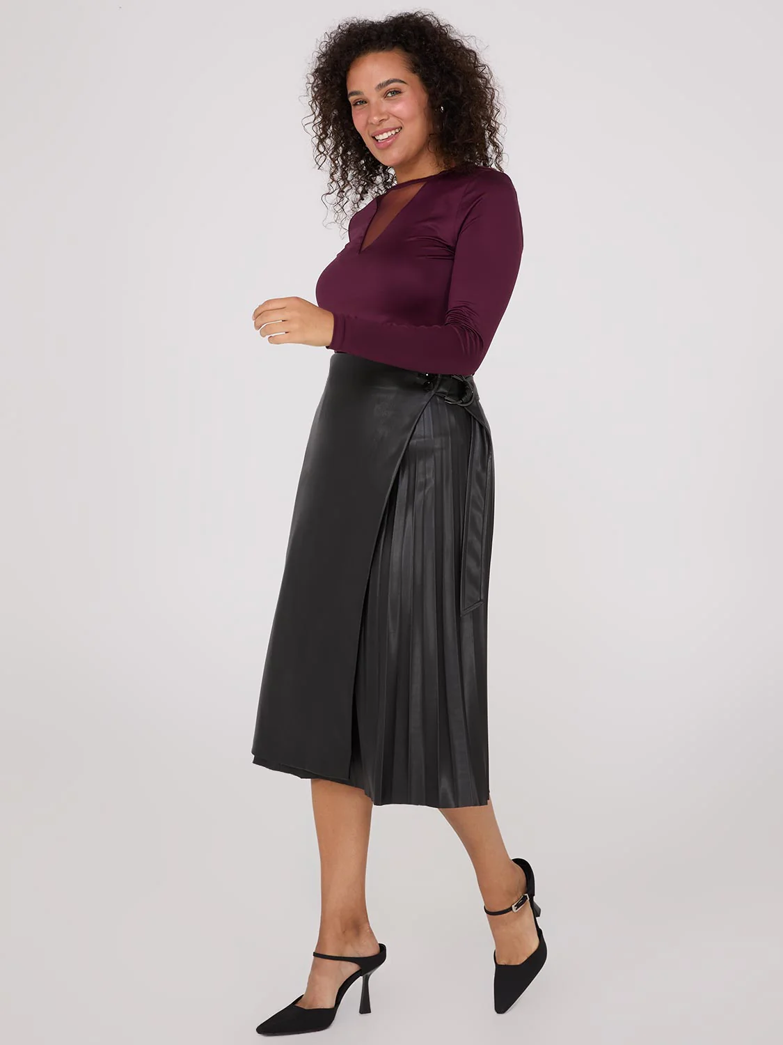 Exude edgy elegance with this chic wrap skirt which features a smooth faux leather finish for a modern look that easily transitions from day to night.