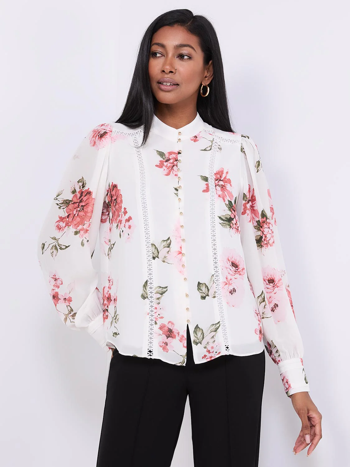 Featuring a feminine floral pattern and pleated details, this blouse offers a charming look for various occasions including brunch with friends or long days at work.