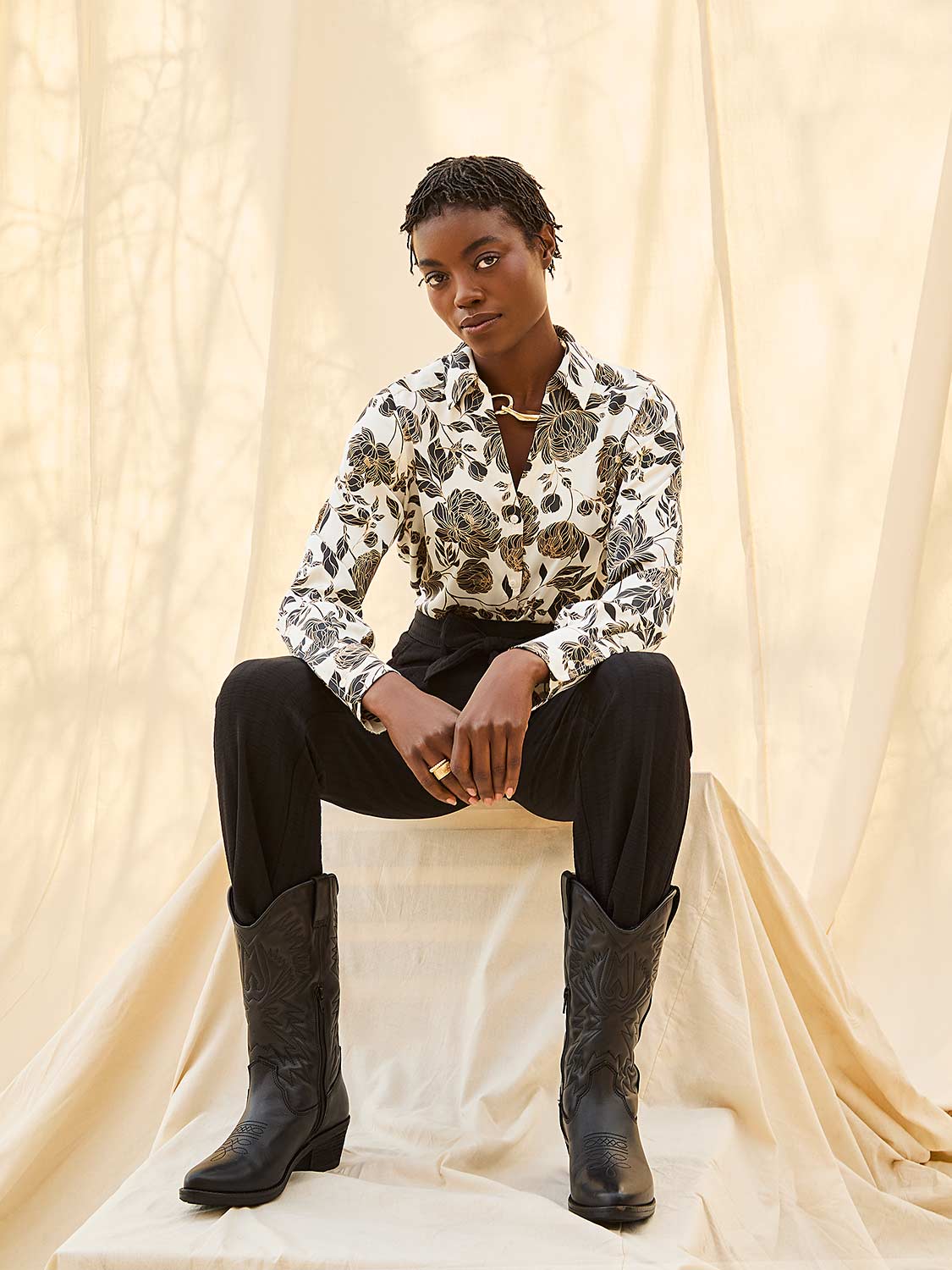 An instant add to your office wardrobe, this sleek satin top is a statement when worn on its own or layered under your favourite blazer.
