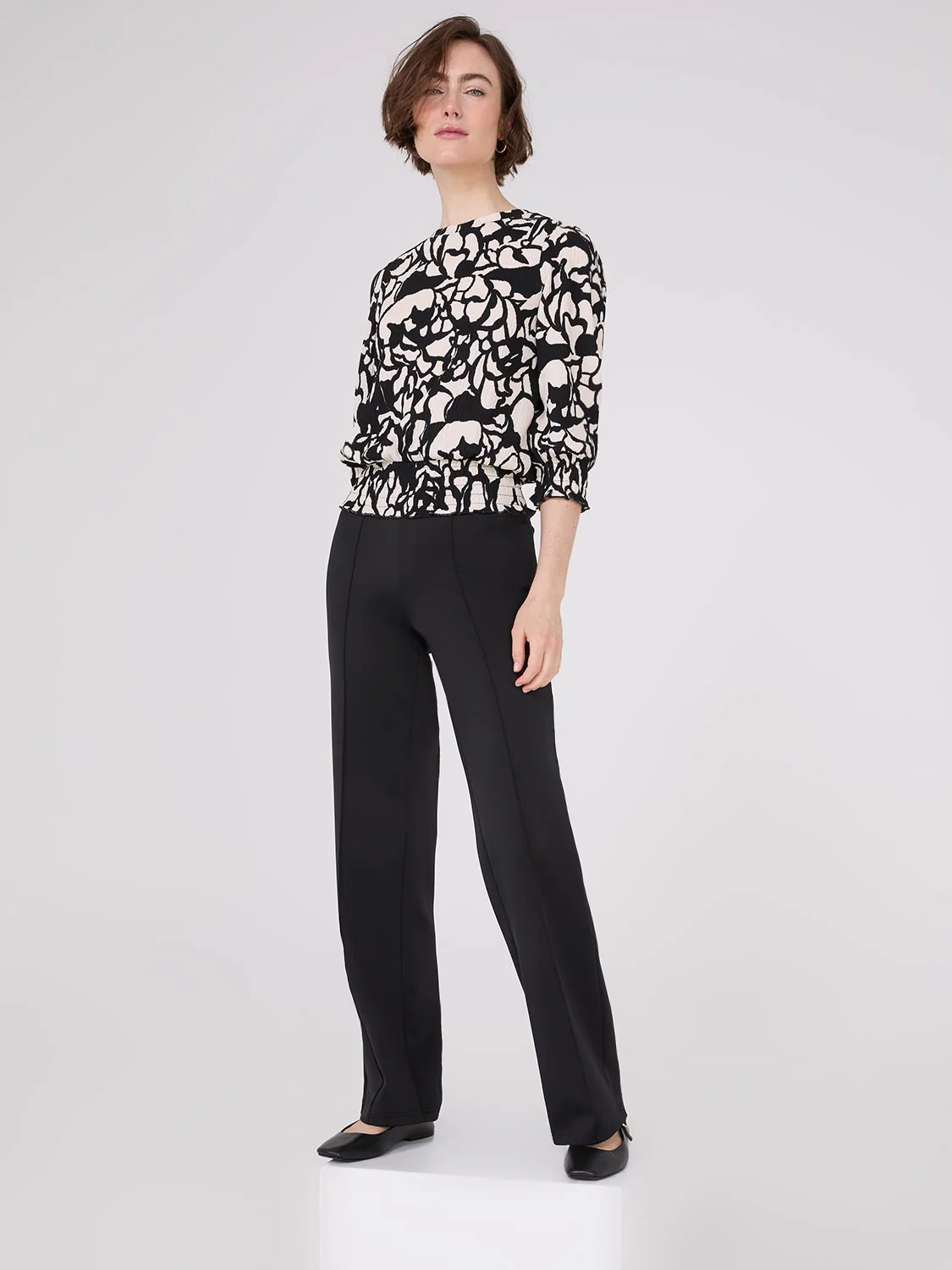 A high-rise waist is accompanied by pintuck details, adding refined charm to these already flattering pants.
