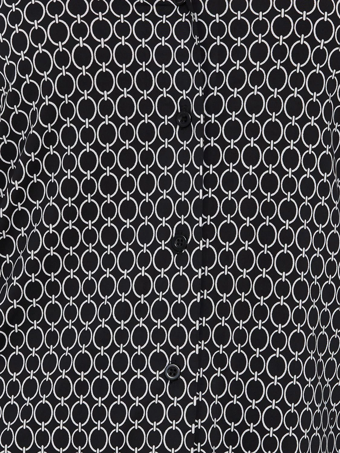 Add a modern flair to your look with our geo print button-front blouse. You can easily transition from the office to dinner wearing this versatile top.