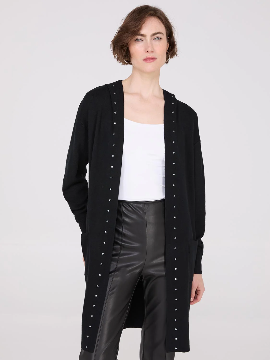 The epitome of edgy style, this hooded duster features striking studs that elevate its bold but simple appeal.