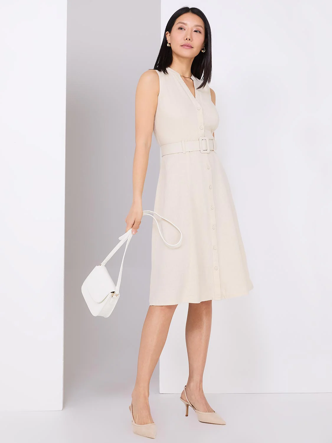 You can never go wrong with this timeless linen fit and flare silhouette. The accessory options are unlimited when it comes to something this classic!