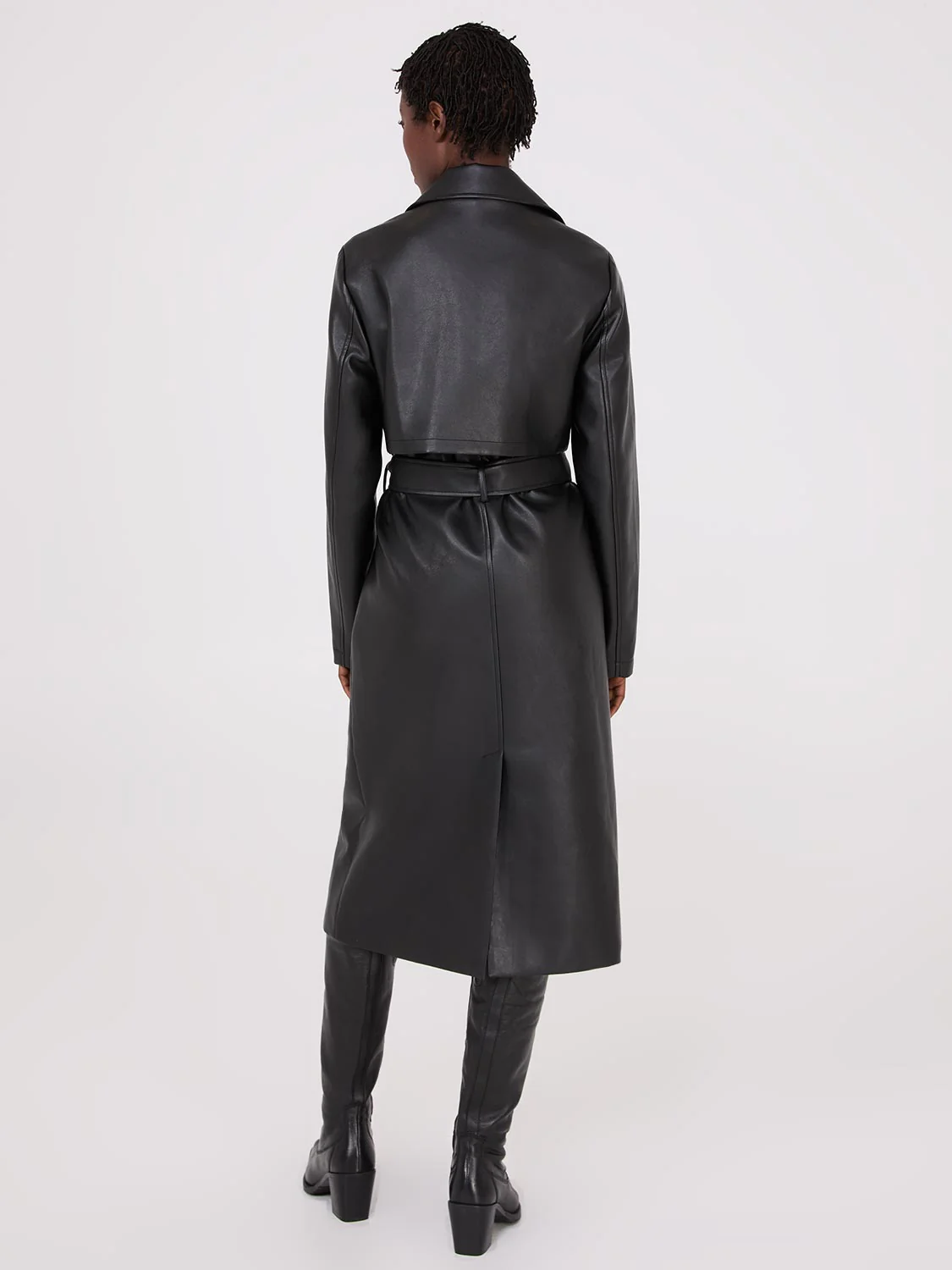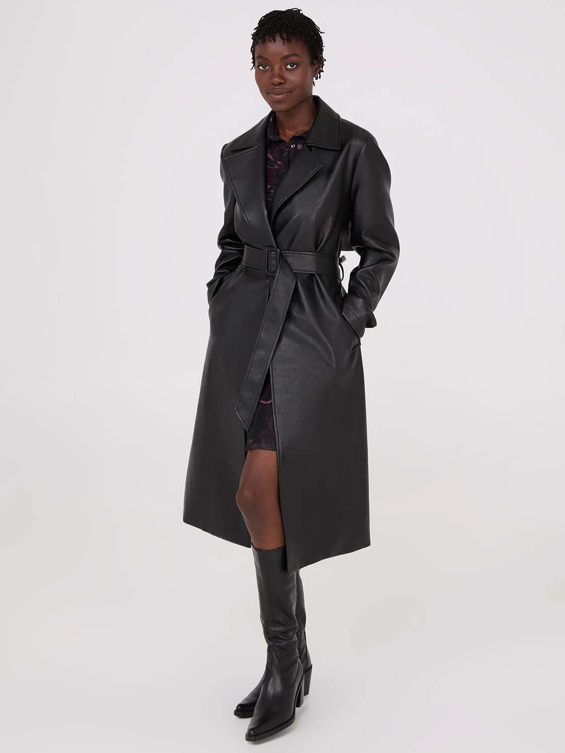 Smooth vegan leather makes this trench coat a luxurious outerwear option for a stylish edge to your wardrobe.