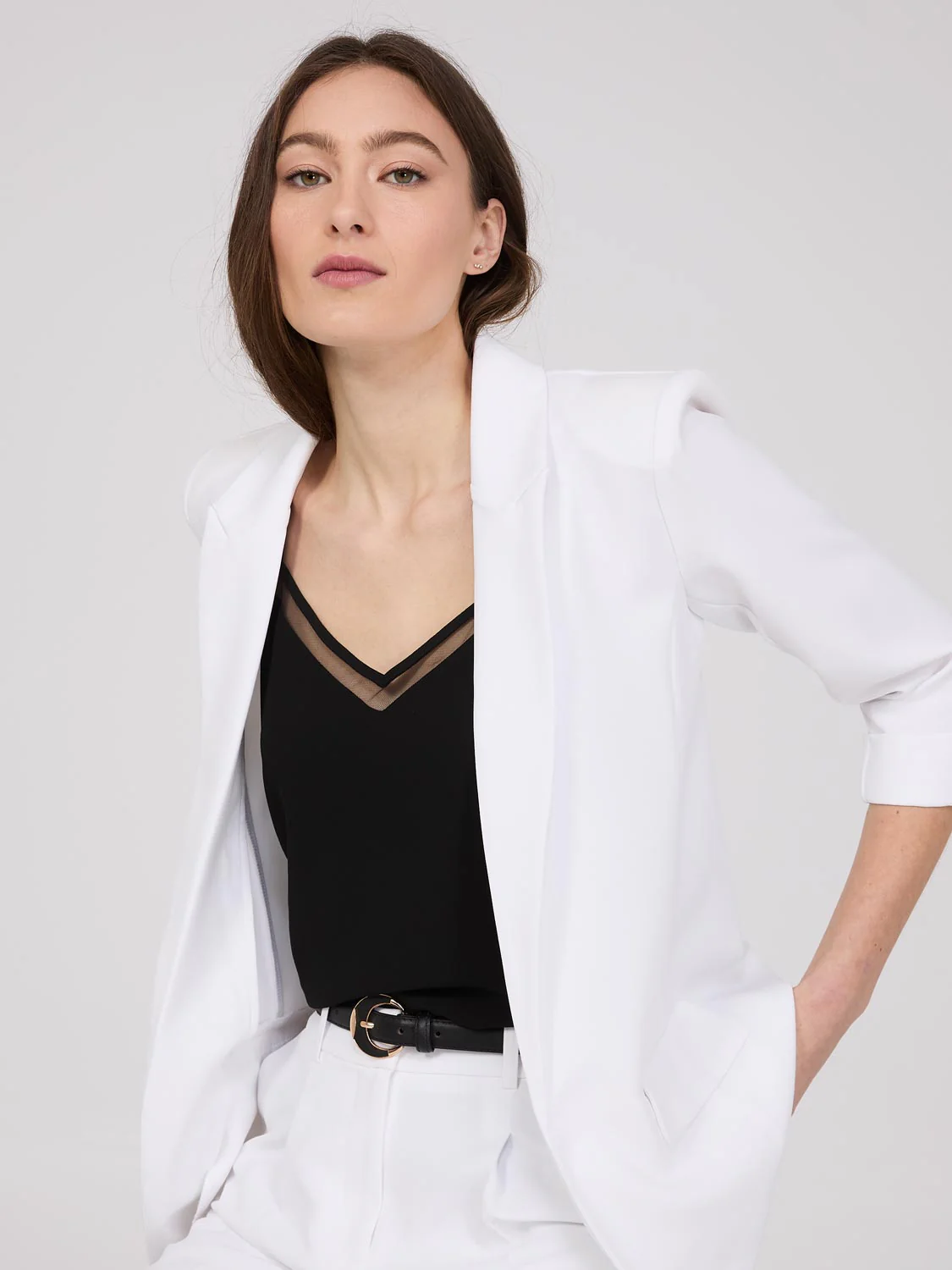 A great tank top can transform your wardrobe, and this v-neck cami takes it to the next level with mesh detailing on the neckline.