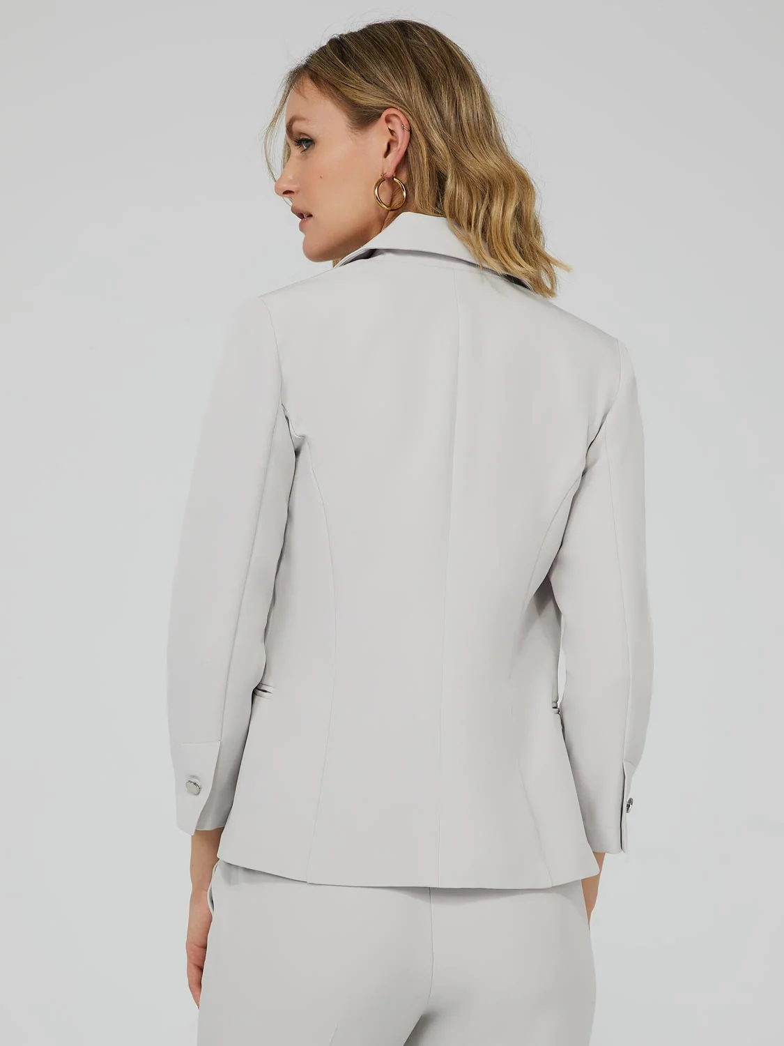 Elevate your look with this one-button blazer. It comes in black, which is perfect for the office, and silver, which can add a bright and glimmering touch to any outfit.