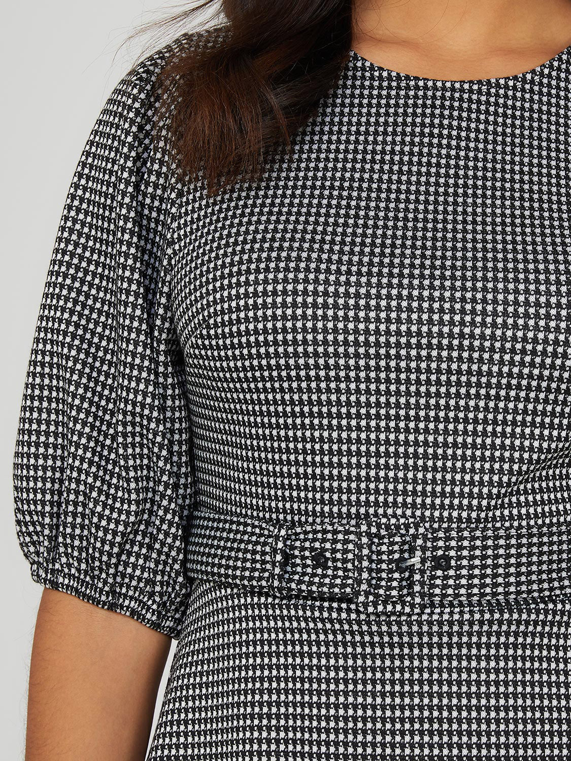 Featuring a fit and flare silhouette, this printed metallic belted dress is a polished piece that can be shown off during special occasions or nights out!