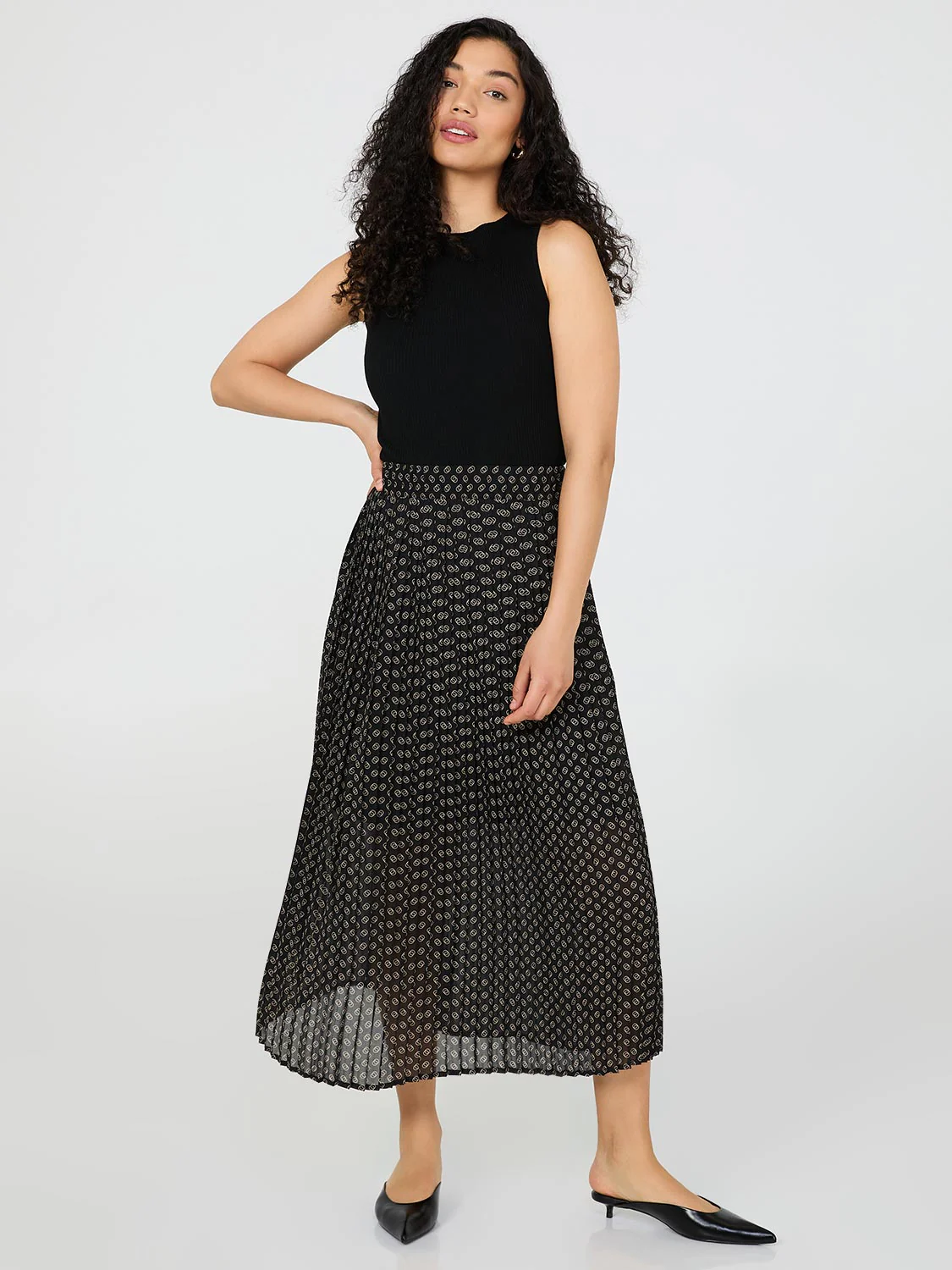 Printed Pleated Chiffon Skirt