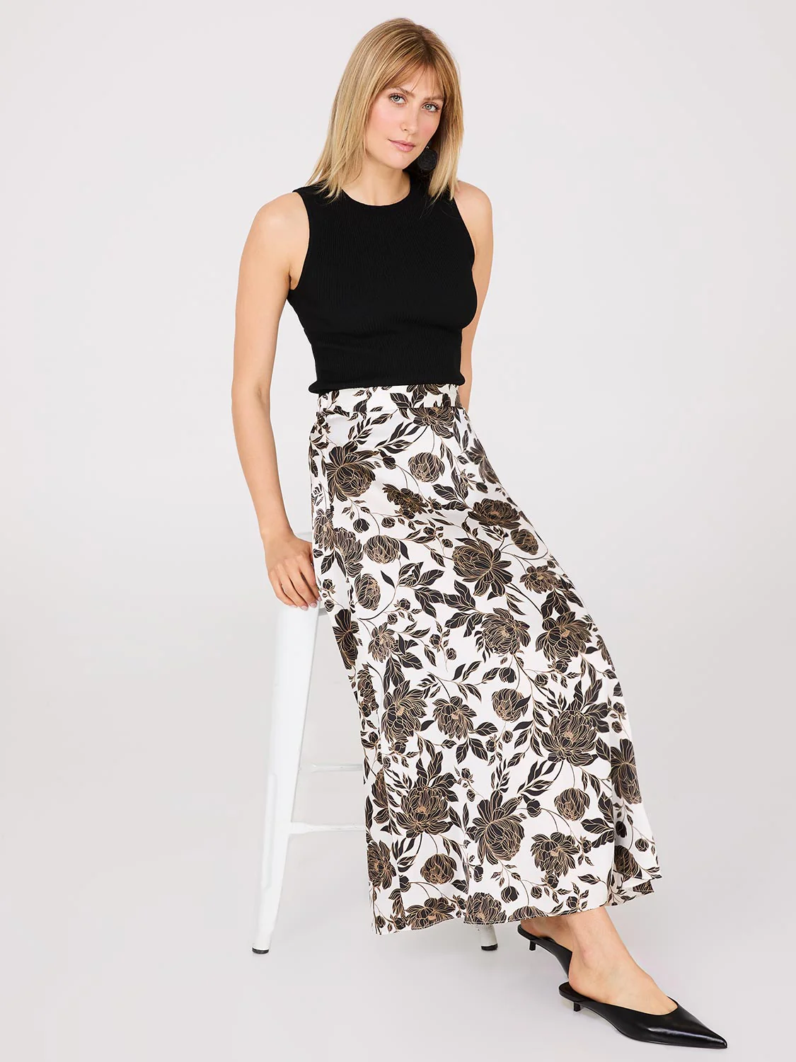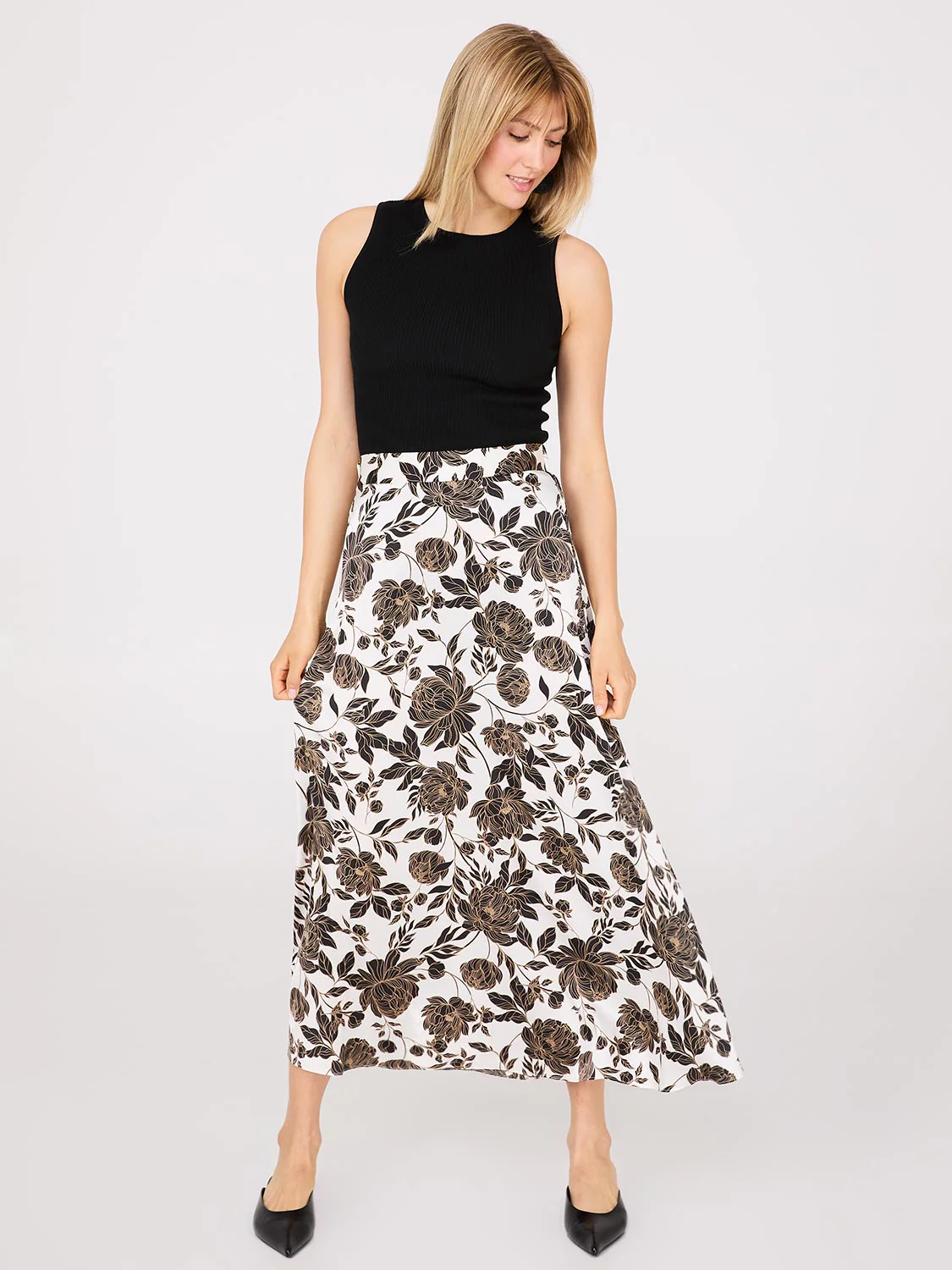 Luxurious satin and an eye-catching print combine beautifully in this A-line skirt, adding a stylish and fresh addition to your wardrobe.
