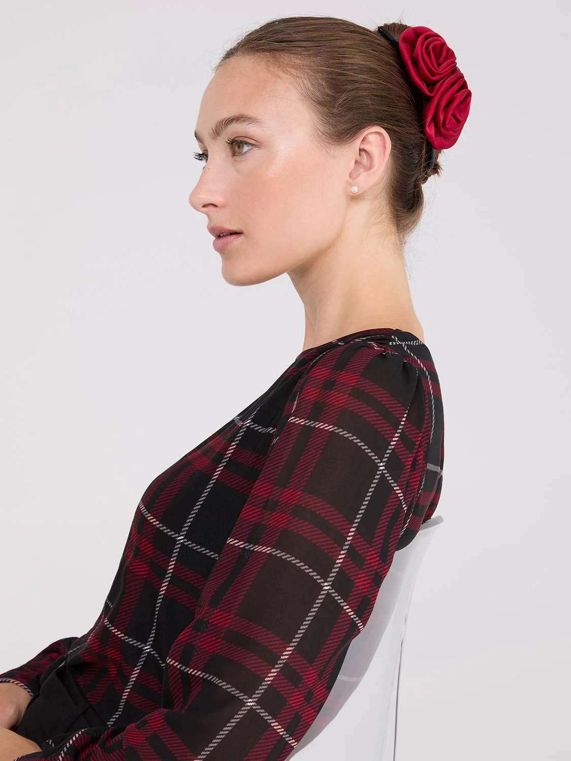 Add romance to your look with this simple satin rose hair clip, the perfect accessory to enhance any hairstyle.