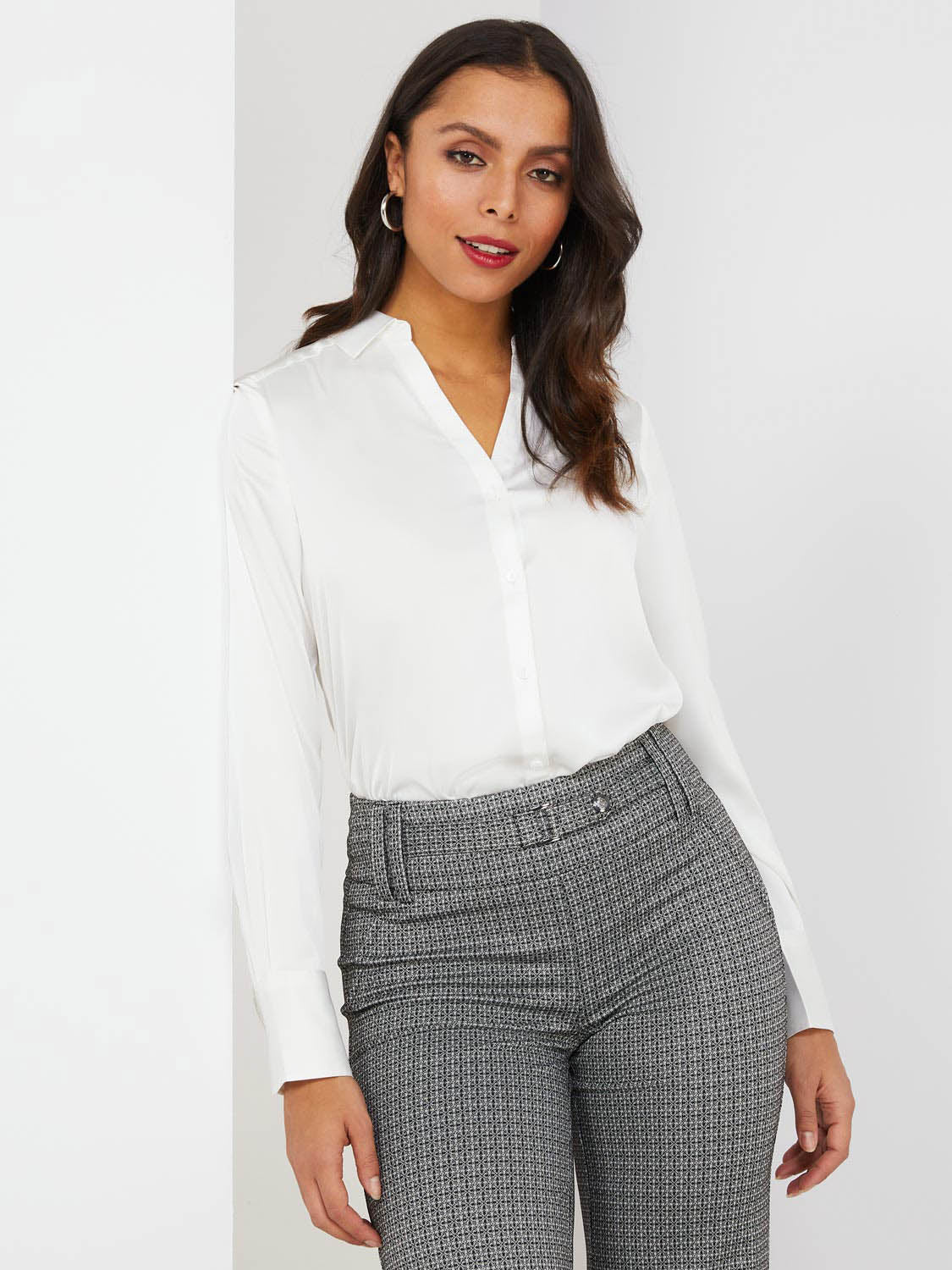 Be the first to review “Satin Split Neck Button-Front Blouse”