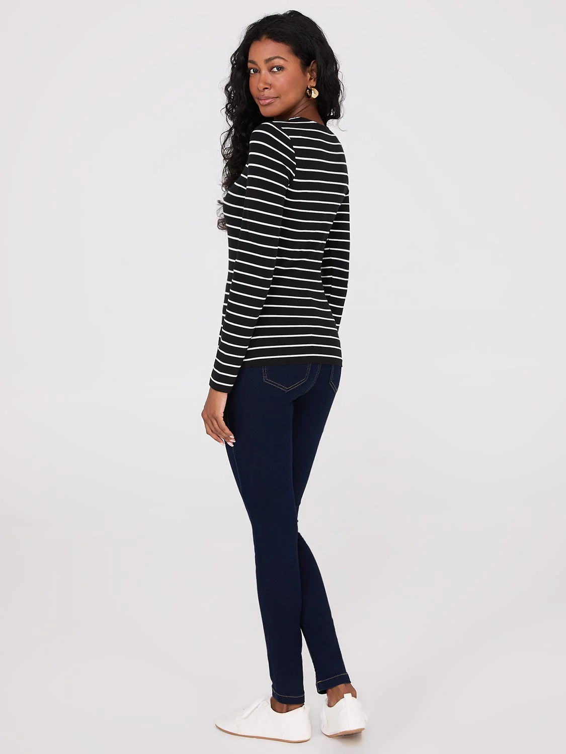 Dress this long sleeve top up or down with its versatility, comfortable fit, and timeless round neck.