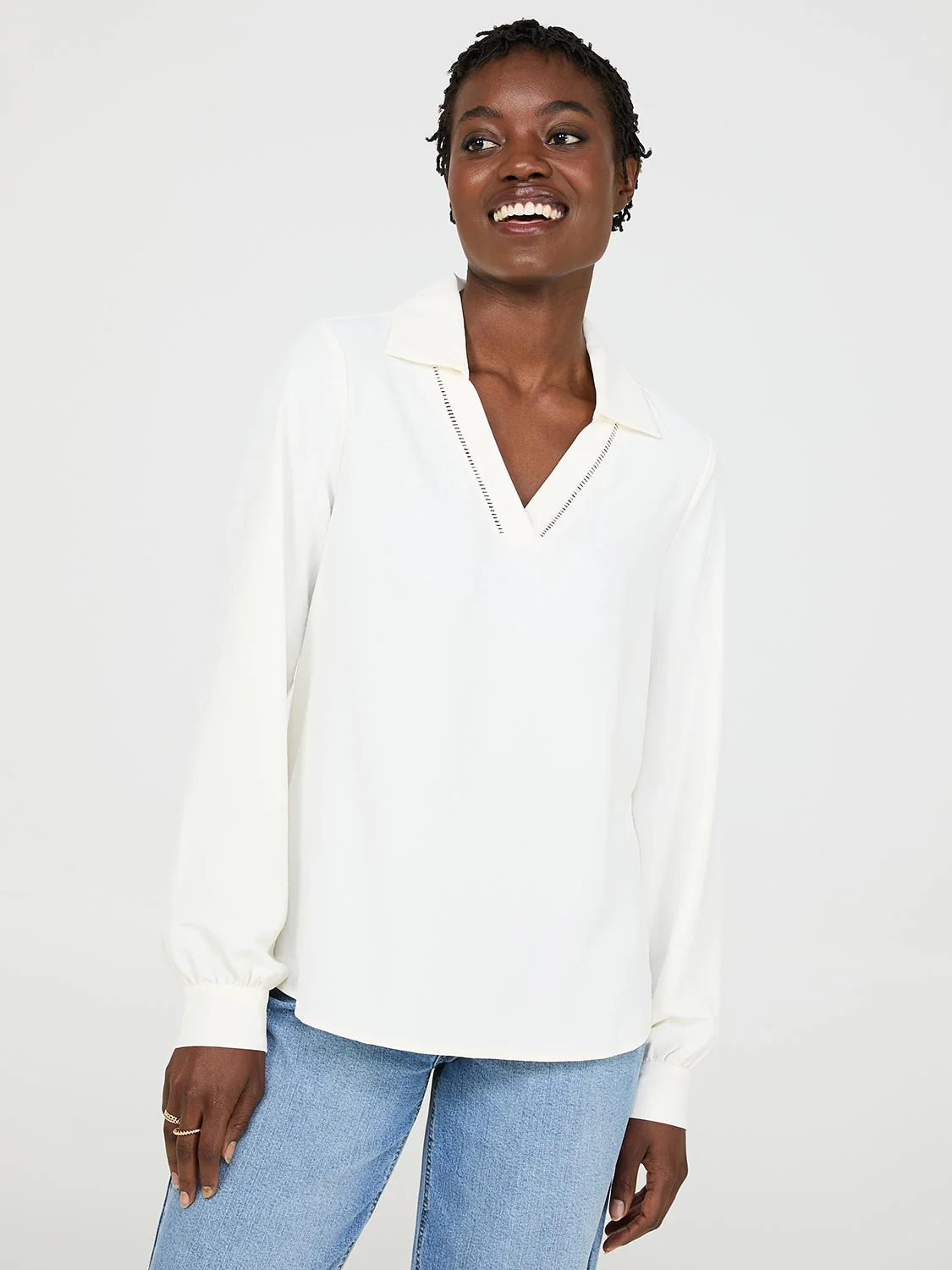 Polished with a Johnny collar neckline and a textured fabric, this popover blouse is a sophisticated option for your 9 to 5.
