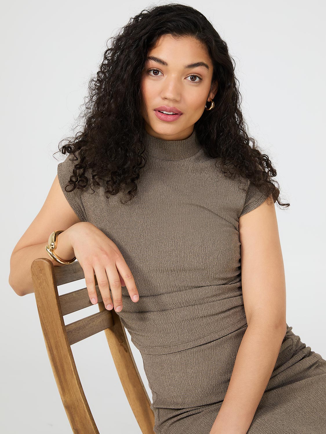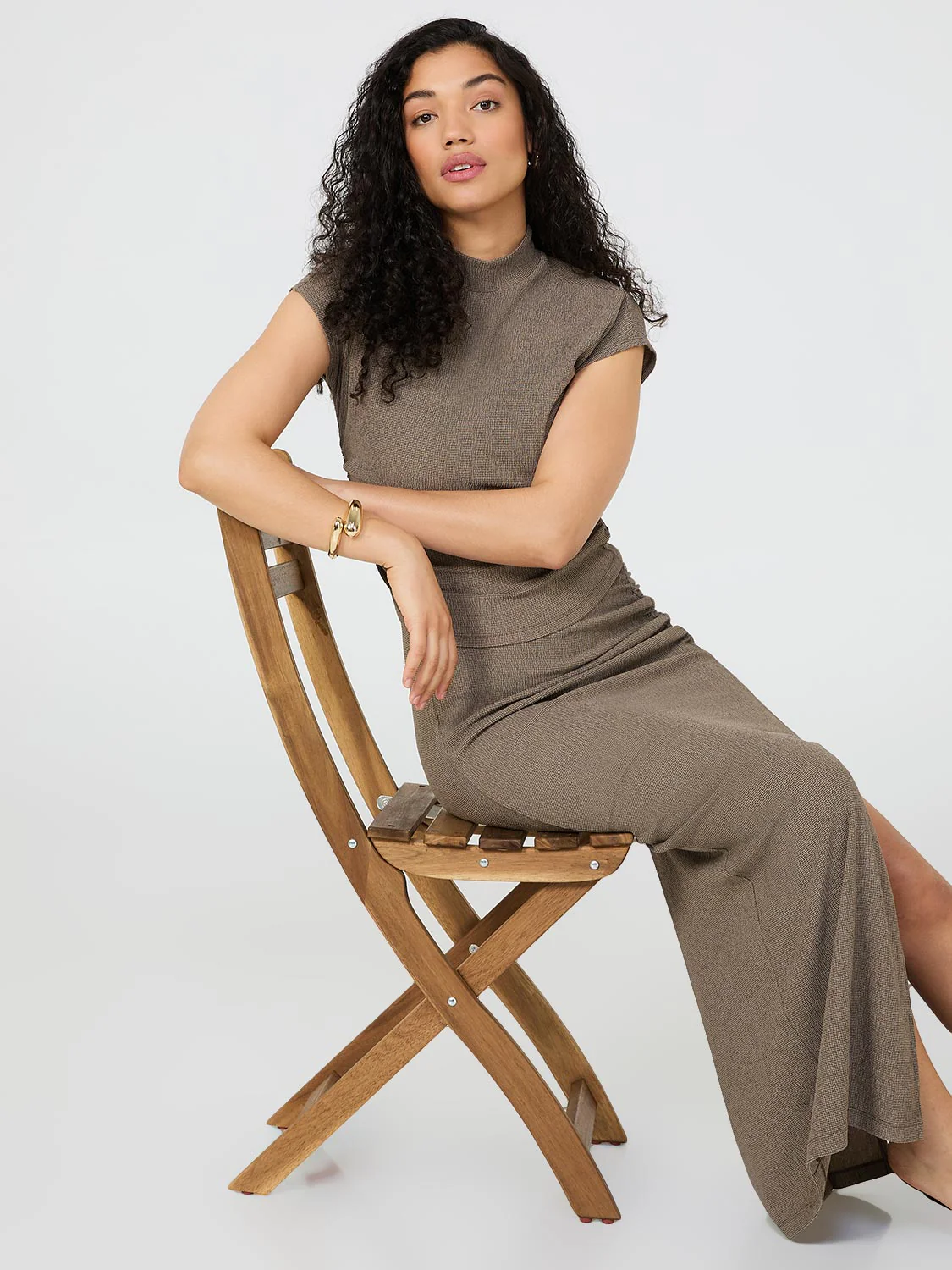 Our mock neck top is a chic essential, featuring a textured fabric and a mock neck for an effortless yet timeless look.