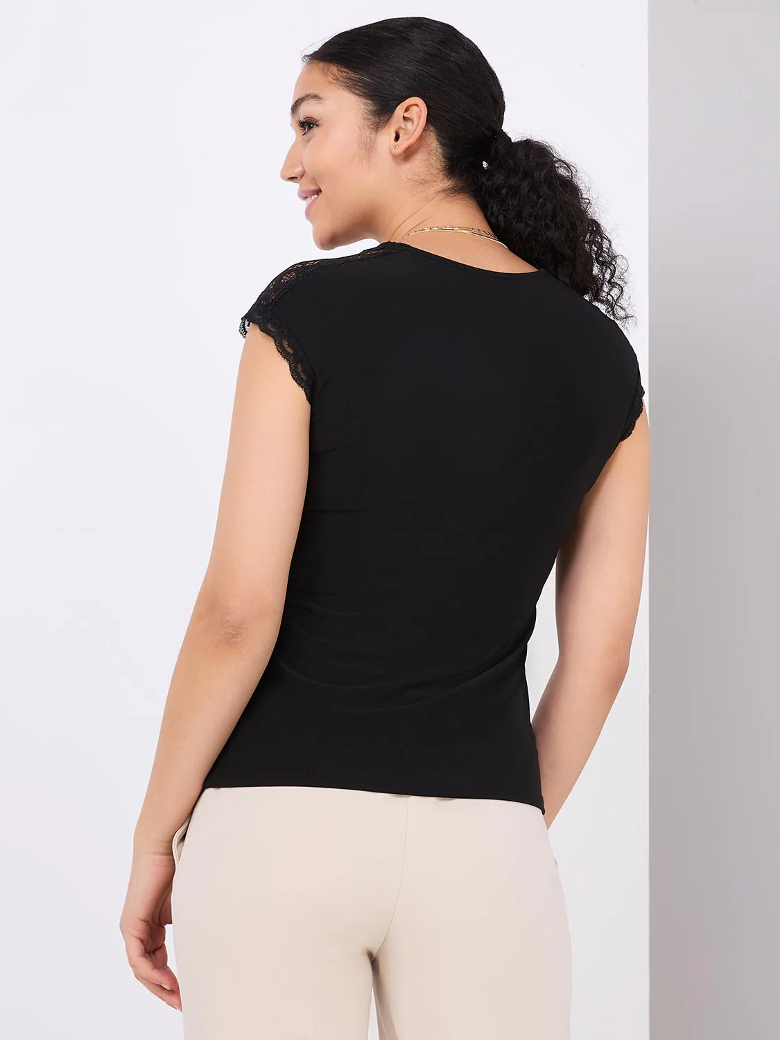 V-Neck Dolman Sleeve Top With Lace Details
